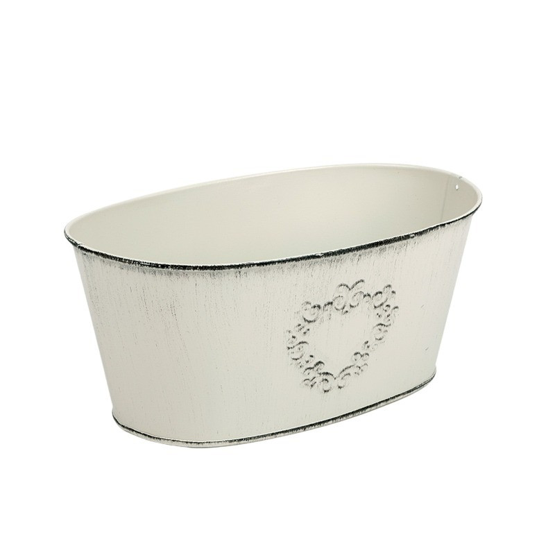 ovális szívmintás cink tál antikolt krém 26x15,5x10cm